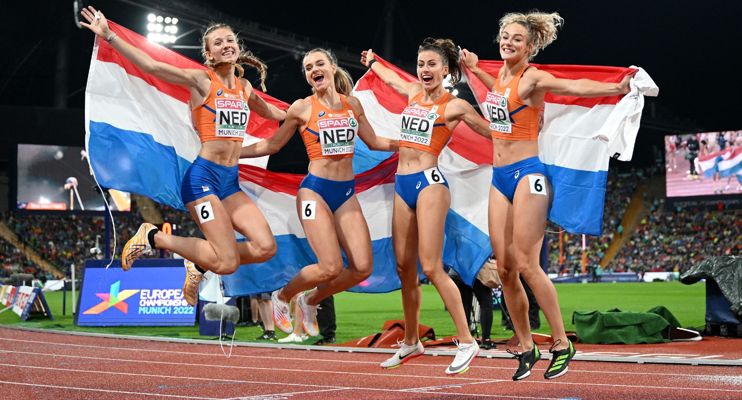 On the rainy but exciting Saturday evening, which started with an arc over the Olympic stadium, the champion in running 400m and 400m hurdles Femke Bol was in the last post to bring the success of the team with 3:20.87 min with Eveline Saalberg, Lieke Klaver and Lisanne De Witte.